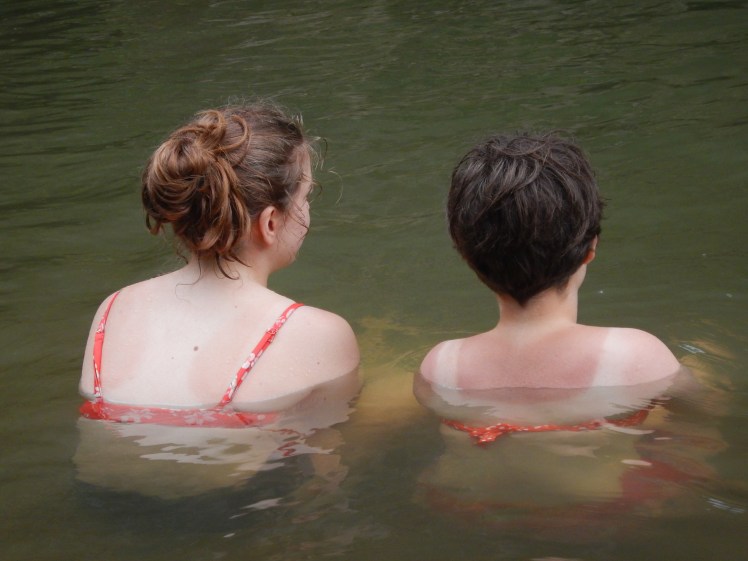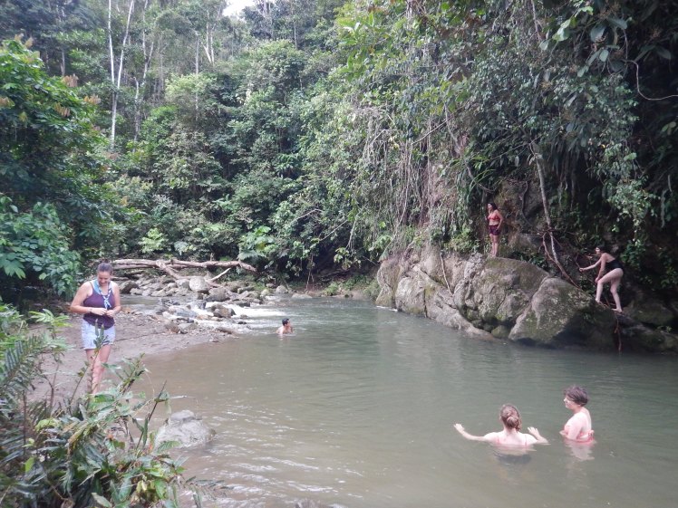 Direction une rivière pour une petite baignade l’après midi. Joli spot mais il pleut donc quelques frisquets ne mouillent que le doigt de pied. Rosita, telle une Awajun intrépide, gravit via une liane à un promontoire situé au dessus de la rivière pour faire un plouf.
