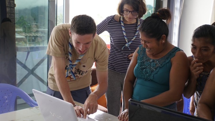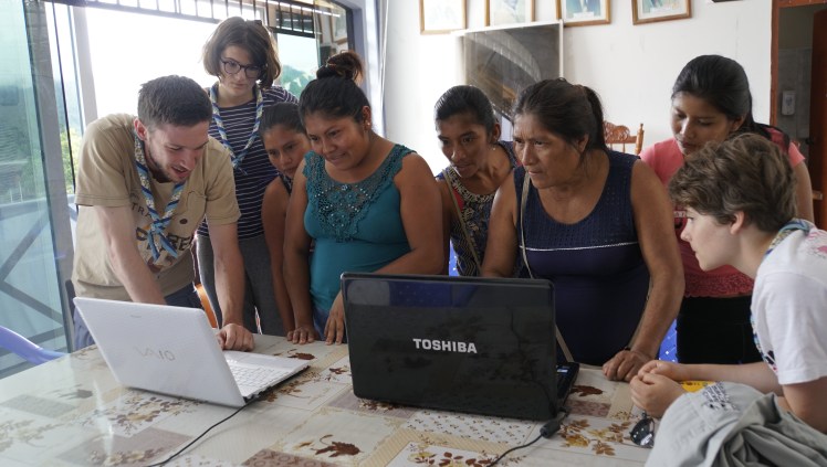 Mardi matin : Cours d’ordinateur. Nous avons appris quelques notions de base d’utilisation d’un ordinateur à 5 femmes awajun : utilisation de la souris, taper du texte, enregistrer des fichiers etc. C’était la première fois qu’elles touchaient un ordinateur.