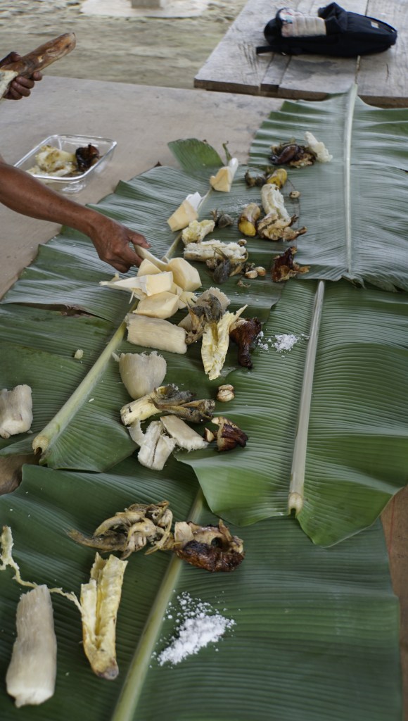 Le midi, nous déjeunons avec la communauté Awajun pour leur souhaiter un au revoir. Nous avons comme d’habitude droit à un bon repas typique Awajun : yuca, poisson frit, pollo, banana, yuca, yuca