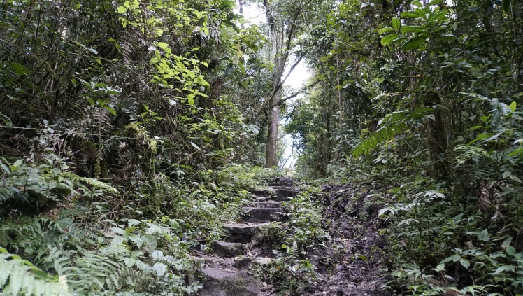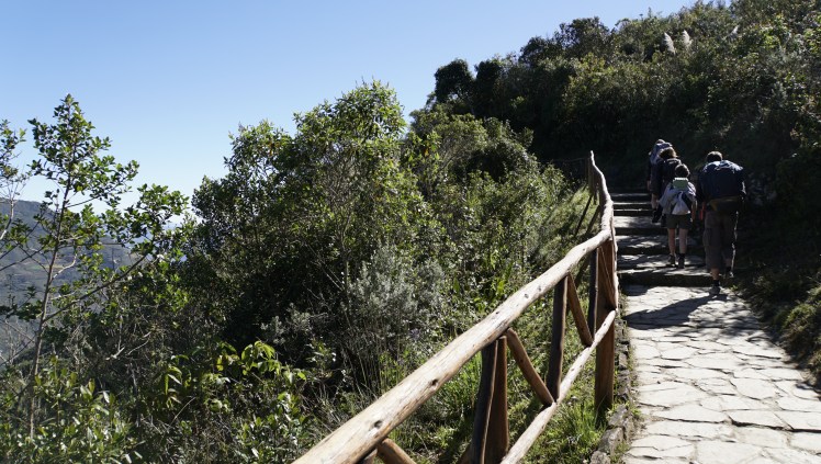 Nous voila sur la route, c’est parti pour un trek de 3 jours! Sacs sur le dos, nous prenons le chemin Inca direction Levanto. La matinee commence fort avec beaucoup de montee, nous nous elevons peu a peu au dessus de Chiriaco. Heureusement il ne fait pas trop chaud et parfois une petite pluie legere nous rafraichit.